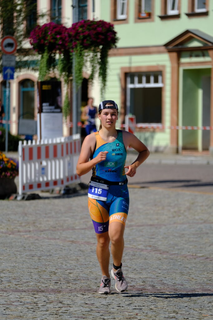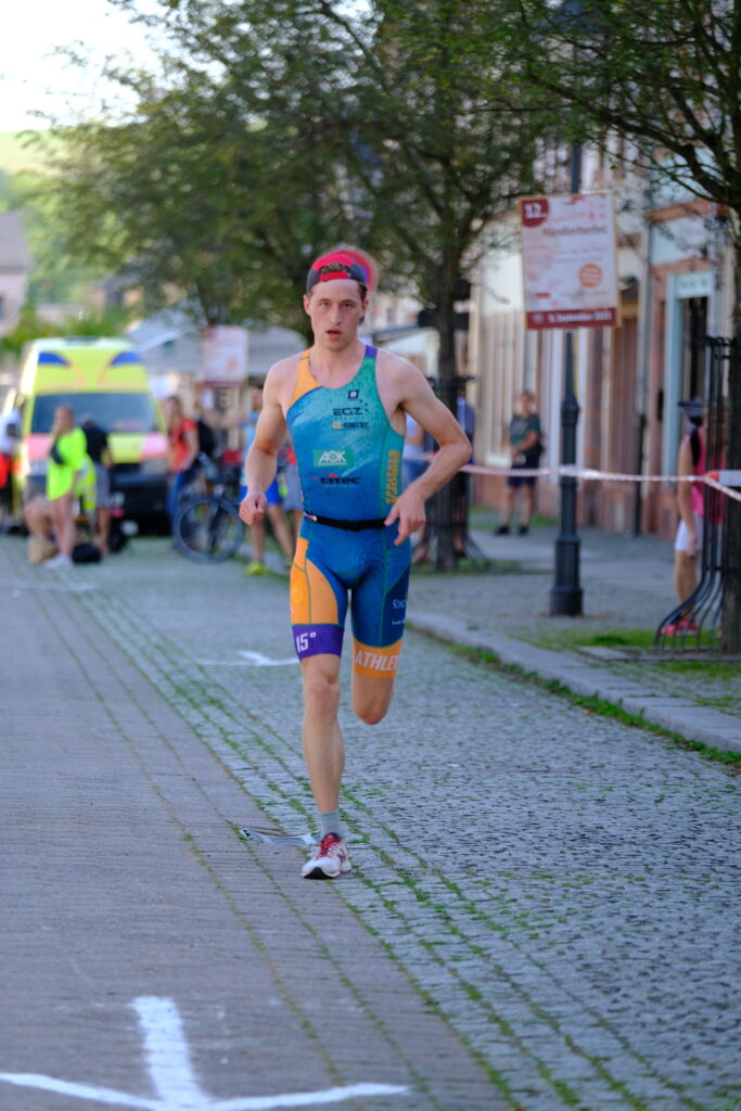 11:15 fand der geplante Start am Badesee Biesern statt und nach nur 09:43 min später kam schon Thaddäus aus dem Wasser. Dicht gefolgt von seiner Schwester Anastasia nach 10:20 min. Nun galt es die Höhenmeter der Radstrecke zu überwinden und Körner für die Laufstrecke zu sparen. Ironie in einem Satz! Thaddäus konnte seinen guten Start halten und mit einer Radzeit von 31:20 min ein klasse Tempo auf den Asphalt knallen! Die Laufstrecke über den Rochlitzer Berg konnte Ihm nichts anhaben und nach nur 1:01:03 konnte er ins Ziel laufen. Platz 5 Gesamt 1. AK und Platz 2 Sachsenmeisterschaft! Glückwunsch!