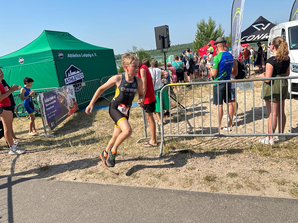 Bei sommerlichen Temperaturen und mit vollem Elan starteten Sophie und Arthur ihren Wettkampf: 400 m Schwimmen im eiskalten Wasser des schönen Freibades, 10 km MTB unter anderem auf der Pflasterstraße – welche schattenfrei direkt zum „Granitwerk Häslich“ führte und 2500 m Laufen auf dem naheliegenden Gelände des Freibades sowie des Fußballstadions.