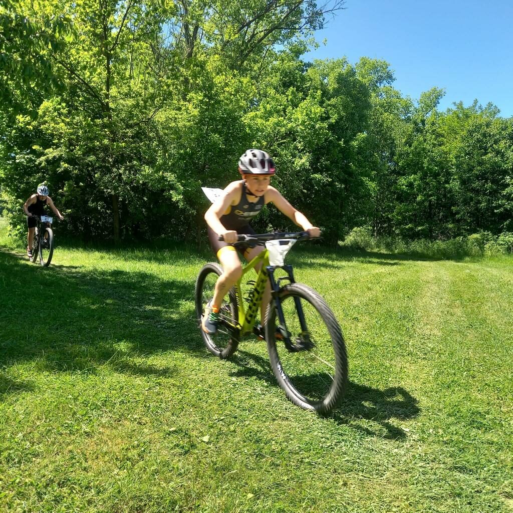 Die Erwachsenen waren als erstes dran und die Kinder feuerten sie kräftig an. Die Schwimmstrecke musste 2x je 250m absolviert werden, aber die Athleten kämpften sich durch und erreichten das Ufer, um auf ihre Mountainbikes zu steigen. Die 15 KM MTB-Strecke hatte schöne Trails, aber leider gab es wenig Platz zum Überholen, was die Strecke noch anspruchsvoller machte. Die Laufstrecke (4 KM) war einfach und flach gehalten musste allerdings 3x bewältigt werden.