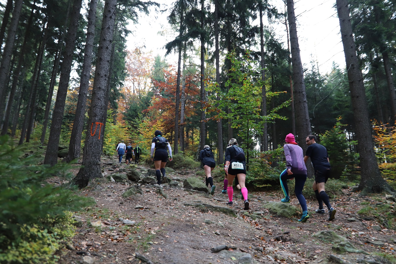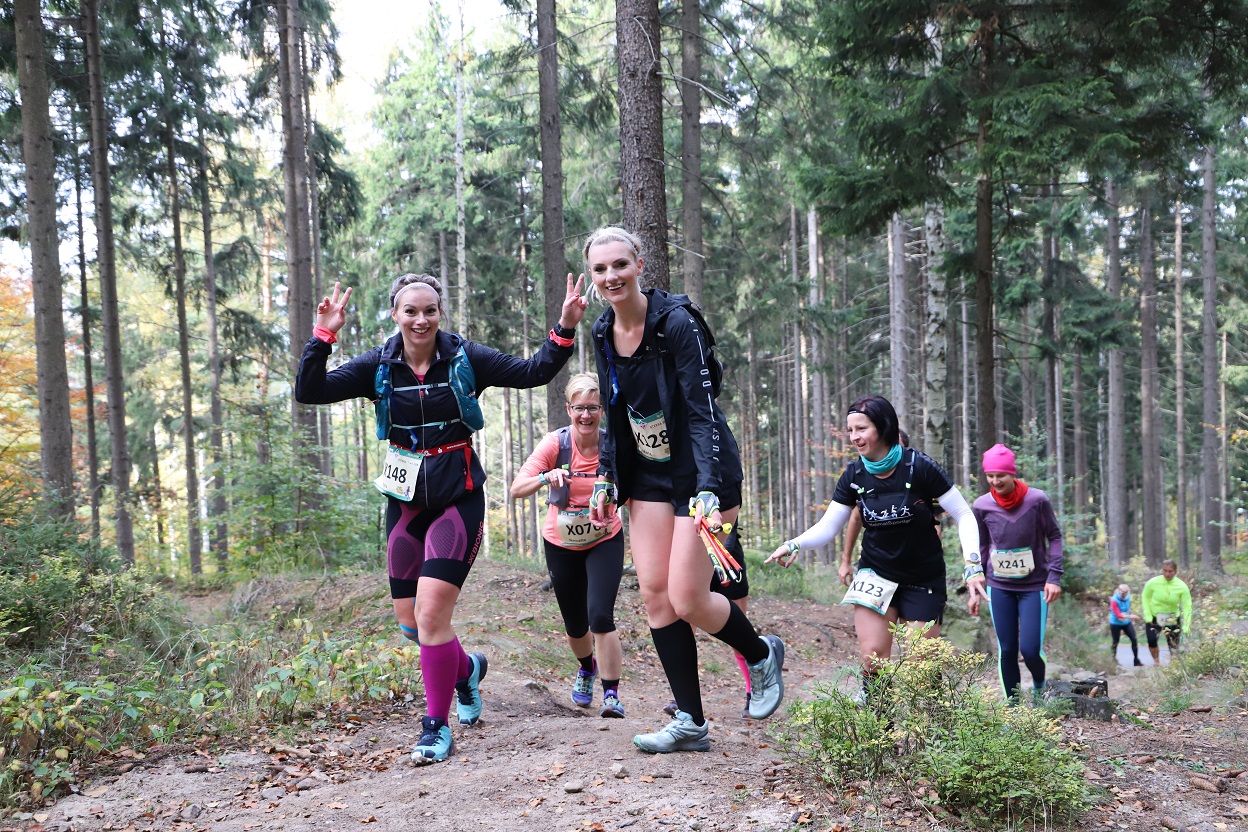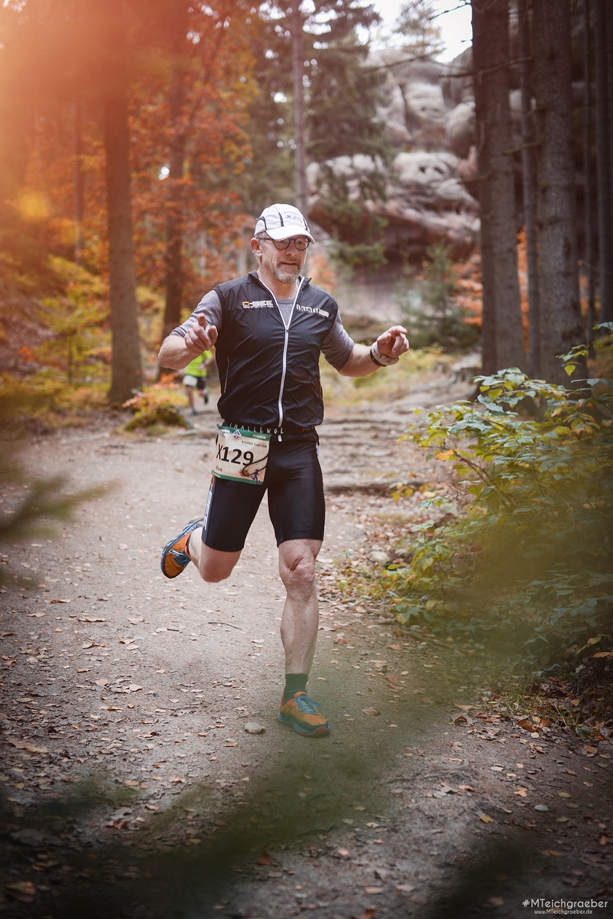 Nun hat die O-SEE Challenge also nach dem Open Water Race einen weiteren würdigen Event-Ableger hervorgebracht und erfolgreich getestet: Am 19.10. startete die Premiere des 1. O-SEE UltraTrail im Zittauer Gebirge. Das Synonym O-SEE steht inzwischen für Qualität, Stil und eine entsprechende öffentliche Wahrnehmung. Dementsprechend motiviert und dem Erwartungsdruck im Nacken startete Anfang 2018 ein weiteres Organisationsteam innerhalb des O-SEE Sports mit den Vorbereitungen für dieses Event, wobei erste Überlegungen und Ideen dazu bis in das Jahr 2015 zurückgehen. In der Zeit schwappten die ersten Trailrun- Informationen über den großen Teich aus Amerika zu uns. Ich weiß noch genau, wie mich damals der XTERRA-Manager Dave Nicholas gefragt hat, warum wir sowas nicht machen, Trailrun wäre in den USA im Augenblick schwer angesagt. 2015 wie gesagt. Ich konnte darauf keine Antwort geben, nahm aber die Anregung mit. Die Jahre gingen ins Land, die ersten Trailrun-Events starteten in Deutschland, in Sachsen. Wir bastelten vorsichtig an einem Konzept. Ein erstes Team begann mit der Entwicklung der Strecken, dann aus Kapazitätsgründen wieder Pause. Die O-SEE Challenge selbst ist so kapazitäts- und kräftezehrend, dass alles andere in den Hintergrund rücken musste. Inzwischen ging das O-SEE Open Water Race als neues Baby ins Rennen. Dank der Initiative des Schwimmenthusiasten Olli Fiedler. Das Trailrun-Projekt lag dagegen in der Schublade. Dann traten zunehmend Tailrunner bei O-SEE Sports in Erscheinung. Und irgendwann konnte ich Swen Adolf das Versprechen abringen, dass er nach seiner Weltreise das Trailrun-Projekt Anfang 2018 angeht. Er sagte zu, nicht wissend, was da auf ihn zukam. Parallel dazu gab es bei den Leichtathleten der HSG Turbine auch Überlegungen einen Herbstcross-Wettbewerb für die Kids zu installieren. Sie kamen auf uns zu und wir wurden schnell handelseinig. Es war glaub ich, das Beste, was dem Trailrun-Projekt passieren konnte. Die Kooperation hat uns so einen Schub und einen Zuwachs an Kapazitäten und Ideen gegeben. Allein wären wir wohl ganz schön „baden gegangen“. 2018 wurde am Konzept und Anfang 2019 dann an den Strecken gefeilt. Wir rechneten mit ca. 200-250 Teilnehmern. Die Meldezahlen dümpelten auch anfangs, schnellten dann aber extrem hoch. Mit knapp 400 Teilnehmern wurden alle Planungen bei weitem Übertroffen. Dann der wichtige Teil der Streckenfindung und Markierung. Hier haben einige vom Team zig Kilometer abgespult. Als Ausschilderung entschied man sich für farbige Stoffbändchen. Diese wurden leider in Größenordnungen geklaut, bewusst/unbewusst entfernt – wie auch immer. Eine Woche vor Wettkampf lagen dann die Nerven bei den Streckenverantwortlichen blank und man entschied sich für den Einsatz von forsttauglichen Farbspray. Leider nicht mit der nötigen Sensibiltät… Das brachte erste Minuspunkte in der ansonsten ziemlich makellosen Bilanz des Events. Aber es steht das Versprechen, alles wieder zu beseitigen. Wir werden dazu noch ein Statement als „Tatortreiniger“ 😉 abgeben.