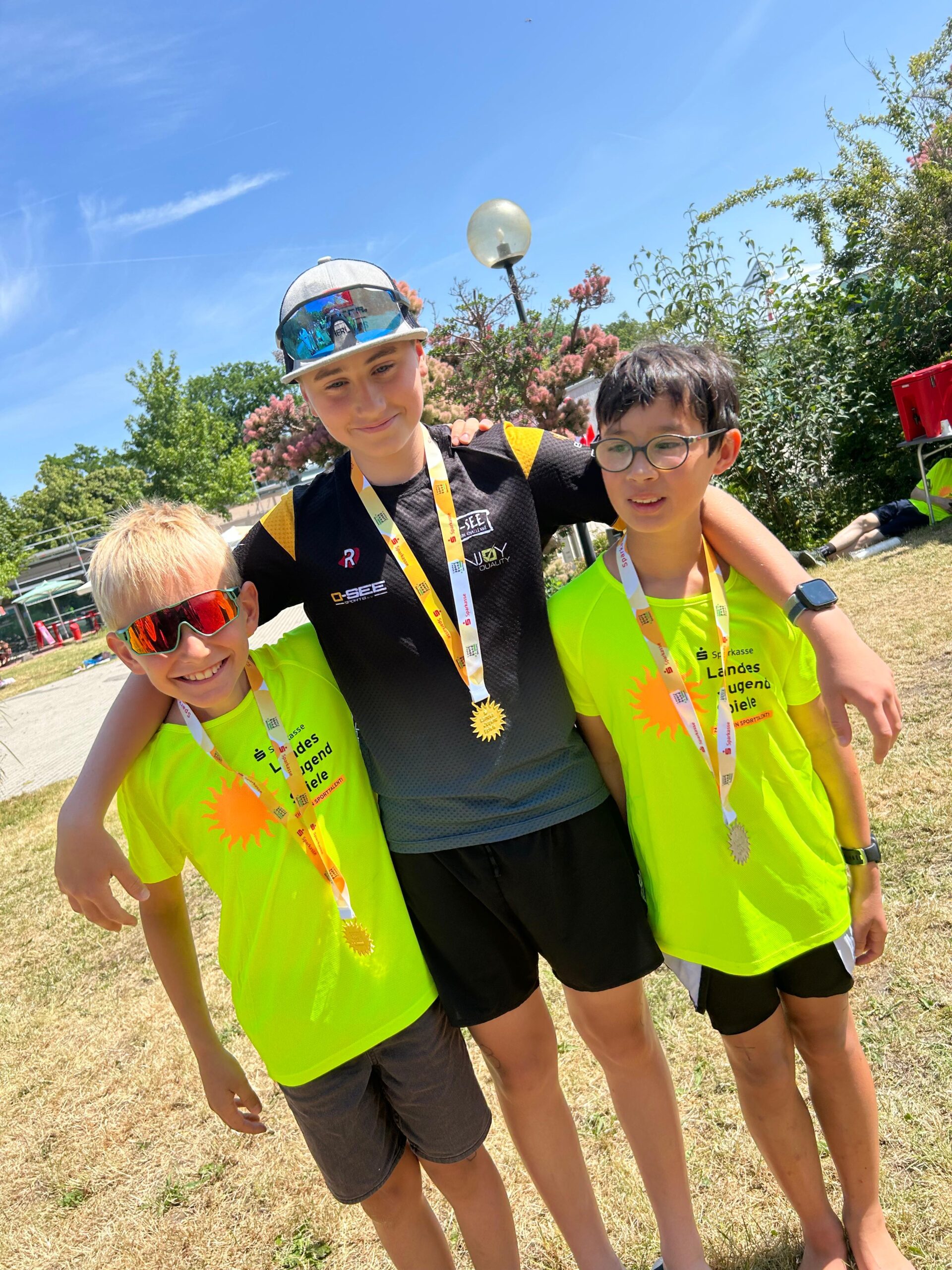 Bei bestem Sommerwetter trafen sich Yannik, Erich und Tim mit ihren Familien zu den diesjährigen Landesjugendspielen in Dresden im Swim & Run.