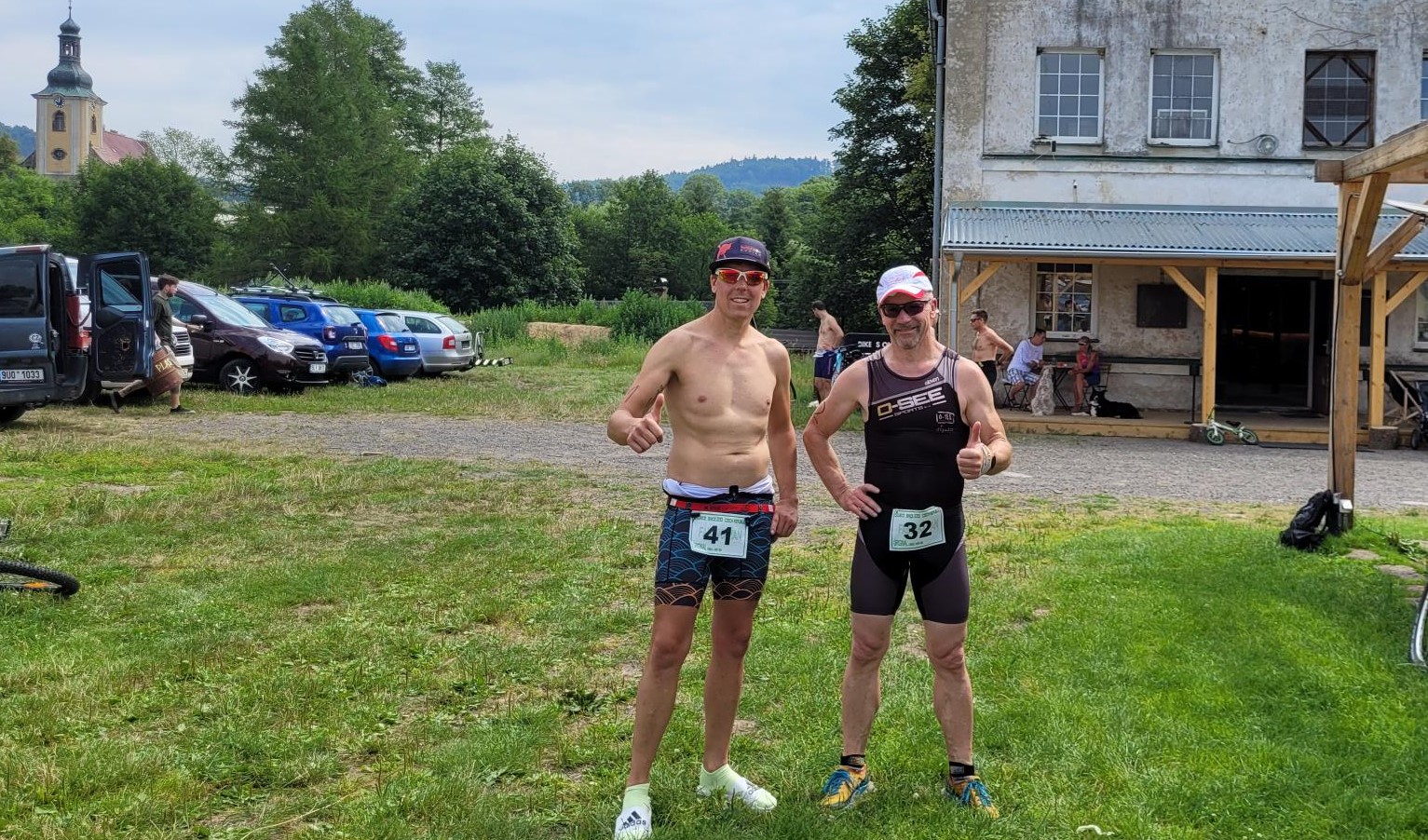 Traditionell versuche ich immer mal wieder, die Kleinode der hiesigen tschechischen Crosstriathlon-Events kennenzulernen. Seit paar Jahren stand da auch der FABRIKAMAN auf dem Zettel. Nun hat es endlich mal geklappt. Ich konnte sogar auch Jens Köhler vom Verein überreden, mitzumachen. Und so waren zwei O-SEE Sports Typen die einzigen Deutschen Teilnehmer. Ein dritter aus der Dresdner Ecke hat vor Ort spontan auf seinen Start verzichtet, da ihm das alles zu anarchistisch vorkam ;-). Der FABRIKAMAN ist ein kleiner, feiner und betont tiefenentspannt organisierter Triathlon in Doubice/Daubitz, nahe Krasa Lipa/Schönerlinde, also mittendrin im sogenannten Schluckenauer Zipfel. Das Besondere: Es gibt 2 Wechselzonen. Aber was heißt Wechselzonen… Plätze wo man sein Rad hinlegt, irgendwo und irgendwie. So wie bei der O-SEE Retro. Wechselzone 1 ist also am Stausee von Kyjov/Khaa. An dessen Böschung legt man das Bike am Wegrand hin, wo es einem gefällt. Geschwommen werden 500m in einer Runde bzw. 1000m, wenn man das Double absolviert. Wir hatten uns für die Originalstrecke entschieden, also 500m (1 Runde)/16km (2 Runden)/5km (1 Runde). Wie gesagt beim Double alles 2 Mal…
