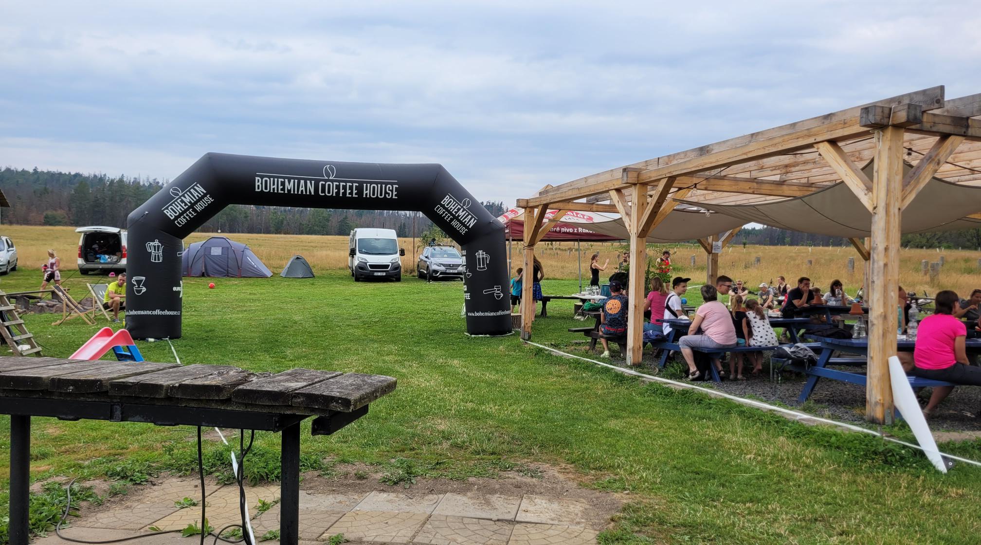 Samstag 23.7.2022 – 10 Uhr also scharfer Start für das kleine Abenteuer im Khaatal. Erstmal Neoverbot, was ich Klasse fand. Sehr gute Wasserqualität, das Schwimmen hat echt Spaß gemacht. Was sich auch in der drittbesten Schwimmzeit aller 40 Starter niederschlug. Aber leider begann damit dann auch das „Durchreichen“ auf den weiteren Disziplinen. Biken können die alle, die Tschechen, auch die Frauen. Traditionell hatte mich nach 3 Kilometern dann eine der Loubkova-Schwestern überholt (Schwimmen kann sie also immer noch nicht J), was jetzt keine Schande ist, da sie immerhin in Ihrer sportlichen Hochzeit als XTERRA-Elite rund um den Globus unterwegs waren. Trotzdem bin ich aber immer wieder beeindruckt, wie die mich auf dem MTB „versägt“. Aber egal, ein alter Mann ist eben kein D–Zug. Zwei Runden rund um Vapenny vrch/Kalkberg mit immer bissigen Anstiegen und teilweise ruppigen Abfahrten über Rodungshänge (der Borkenkäfer hat auch hier ganze Arbeit geleistet), aber auch mit malerischen Passagen, z.B. auf dem hier ziemlich bekannten Kögler-Naturlehrpfad. Die zweite Wechselzone ist dann an der FABRIKA. Sie ist der Namengeber des Events. Die FABRIKA ist eine, zur Gaststätte umgebaute ehemalige Garnfabrik. Schön an den weitläufigen Bergwiesen der malerischen Sommerfrische Daubitz/Doubice gelegen. Von da startet also dann auch der abschließende 5km Laufkurs. Den fand ich nun nicht mehr gaaaanz so schön, da man doch etliche Meter auf Asphalt dabei hatte. Der Rest ging dann durch abgestorbene Fichtenwälder. An den Anblick muss man sich in der Böhmischen Schweiz leider gewöhnen. Jedenfalls, die Sonne knallte da auch wegen der fehlenden Begrünung ordentlich rein, kurz – mir ward es (zu) heiß. Dementsprechend war ich dann auch im Ziel etwas breit.