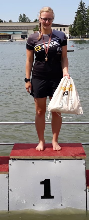 Am Start standen, von den O-SEE Kids Amelie Kühnel als Einzelstarterin. Sie kam als 2. aus dem Wasser, als erstes von der Radstrecke und musste dann nur beim Laufen einen Jungen den ersten Platz abgeben.