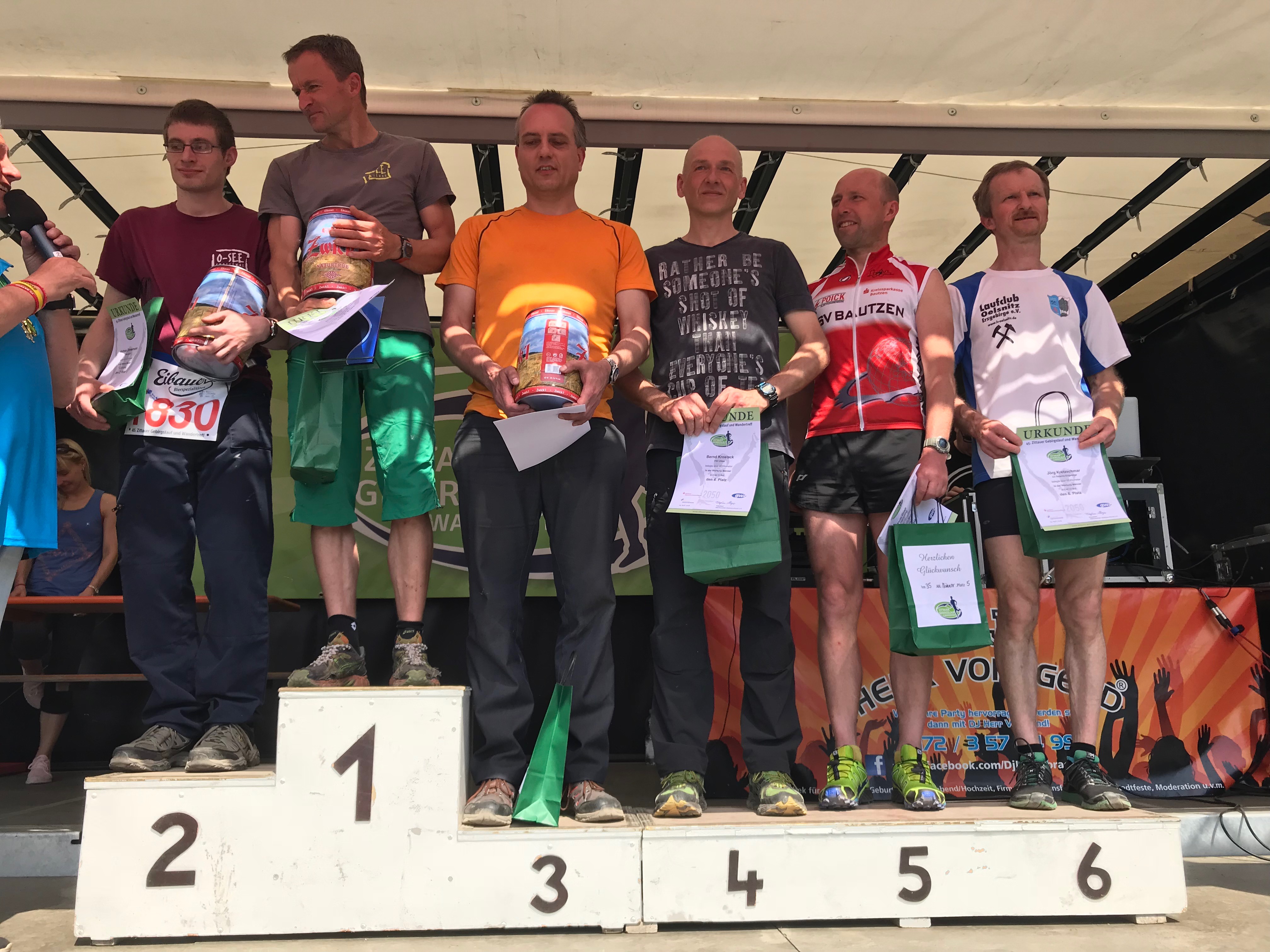 Bei sommerlichen Temperaturen fand am Wochenende 29./30.04.18 der 45. Zittauer Gebirgslauf statt. Das Team vom O-SEE Sports e.V. war mit 15 Mitgliedern am Start und mit dem Abschneiden sehr zufrieden. Mit Philipp Ansorge (Platz 12), Swen Adolf (Platz 17) und Andreas Harazin (Platz 20) konnten sich auf der stark besetzten 17 KM-Strecke gleich drei in den Top 20 platzieren. Der Sieg auf der Distanz ging dieses Jahr mit 1:05:26 h an Patrick König (Görlitzer Falken). Bei den 35 km belegte Vorjahressieger Andreas Zimmermann (O-SEE Sports) mit 2:39:15 h einen hervorragenden 2.Platz. Nur Thomas Lindig vom SV Elbland Coswig-Meißen war knapp 5 Minuten schneller. Ben Mau und Daniel Helbig (beide O-SEE Sports) kamen bei den schnellen 7,5 km auf Platz 17 und 18. Der Sieg auf der Distanz ging mit 29:50 Minuten an Podrouzek Dusan (Bejky Tym Zabehu.CZ). Bei den Damen gewannen Franziska Kranich (LSV-Niesky/EGZ Triathlon Görlitz) mit 3:02:30 h die 35 KM, Julia Belger (OSC Löbau) mit 1:16:58 h die 17 KM und Loreen Schiffner (Bertsdorfer SV) mit 38:04 Minuten die 7,5 km. Alle Ergebnisse findet ihr hier http://www.zittauer-gebirgslauf.de/ergebnisse-des-45-zittauer-gebirgslaufs-wandertreffs/