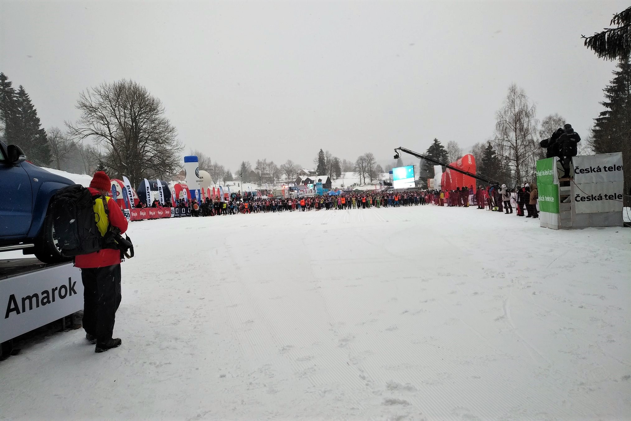 2018 war ich mit Nachbar Claudius unterwegs, dieses Jahr gesellte sich Friebo der alte Haudegen nach zig Jahren Abstinenz (vom Iserlauf) sowie Rookie Ronny Helbig. dazu. Da waren wir schon mal 3 O-SEE Sports-Leute im Team. Zählt man Tobias und Tino „Beule“ noch dazu, waren wir immerhin schon fünf. Aber im Gegensatz zu den beiden letztgenannten hatten wir wie 2018 schon vorab Basislager in Bedrichov bezogen. Für so eine Nummer ist das schon ein erheblicher Komfortgewinn, wenn man nach einer gemütlichen Hüttennacht und Frühstück 8.45 tiefenentspannt zum Start schlappen kann. Vorausgesetzt man weiß vorher, was man wachst. Friebo und Ronny vertrauten auf ihre Fellski und waren tiefenentspannt, Claudius und ich hatten ein Wachsproblem. Denn die Wetterbedingungen waren diffus angesagt: fette Plusgrade, gfs. Regen, Sturm usw. Am Vorabend hatten wir gehofft, dass der neu propagierte Klisterwachs VR62 die Rettung ist. Aber nach einem Testlauf merkten wir schnell – das wird nix (reimt sich auf Swix, muhaha). Also versuchten wir am Abend noch von besagten Swix-Spezialisten paar Tipps abzulauschen – aber die gaben sich extrem zugeknöpft und verwiesen auf die offizielle Info am Wettkampfmorgen. Und die besagte dann Klister silber und rot gemixt. Wurde dann auch so raufgepappt. Trotzdem, leichte Skepsis meinerseits…Und die war gar nicht so unangebracht. Denn nach ca. 3 km Bobbahnspur ab Start änderten sich die Schneeverhältnisse stetig, weil – es geht bergauf. Langanhaltend. Und je höher man kam, desto feinkörniger wurde der Schnee, oben war fast Pulverschnee, auch fing es an leicht zu schneien. Wehe man kam abseits der Spur… dann stand man sofort, als ob man Bremsklötzer untergeschnallt bekommen hat. Aber andererseits war der Stieg in der Spur auch nicht so umwerfend. Alles in allem – nach ca. 8 km hatte ich es ziemlich satt. Als dann Hänchen Gotti Junior mich dann noch mit der Bemerkung überholte, dass der auf der Startnummer stehende Klaus Schwager wohl einen Doppelgänger haben muss, war ich „übellaunig“. Sah also nicht so toll aus, wie ich da rumstocherte. Die Spitze saß. Aber manchmal braucht man solche Motivationssp(r)itzen halt. Denn von da an ging es besser. Lag aber vielleicht auch am Streckenprofil. Denn nachdem der Rozmezi (990m) erreicht ist, geht es in schneller Fahrt an den markanten Wegkreuzungen Cihadla und Knajpa, Kasarenska und U Studanky vorbei weiter nach Jizerka/Kleiniser, danach zurück zum Smedava/Wittighaus, um dort dann den Superanstieg zurück auf den Kamm zu bewältigen. Da hab ich dann einige richtig leiden sehen. Inzwischen hatte ich mich mit der Klistermischung angefreundet bzw. es ist nun wärmer geworden und hatte wieder komfortablen Abdruck, konnte nun ordentlich Boden gutmachen, welchen ich anfangs eingebüßt hatte. Und so ordnete ich mich dann bis ins Ziel gut in die Expresszugreihen der Schieber ein ohne weiter durchgereicht zu werden. Trotzdem, im Ziel traute mich kaum auf die Uhr zu schauen. Aber die verkündete 3:25 h – alles gut, sogar 5 Minuten schneller als 2018. Damit hatte ich echt nicht gerechnet, nach den „versemmelten“ ersten 10 Kilometern. Also dem Verfall wieder ein Jahr erfolgreich getrotzt. Nun gut, wenn ich mir die Zeiten der echten Könner vom Bertsdorfer SV, PSV etc. angucke so ist da noch Luft nach oben. Aber nicht mehr in diesem Leben. Gelernt ist eben gelernt. Und was Hänschen nicht lernt … egal. Nun also fix umgezogen und dann auf die anderen warten, die nach und nach eintrudeln. Gespannt war ich auf die Erfahrungen der Fellskispezialisten. Aber die waren ganz schön geerdet. Mit den Bedingungen waren die Superwaffen auch überfordert. Und so ruderte man am Berg auch ganz gewaltig. O-Ton Friebo: Meinen Stieg habe ich im Startgarten abgegeben…“ Aber abgehakt. Alle im Ziel, alle lächeln, alle stolz. Logisch dass danach das edle Bier aus der Cvikover Brauerei geschmeckt hat. Und für 2020 haben wir schon mal alles klargemacht, 9.2.2020.