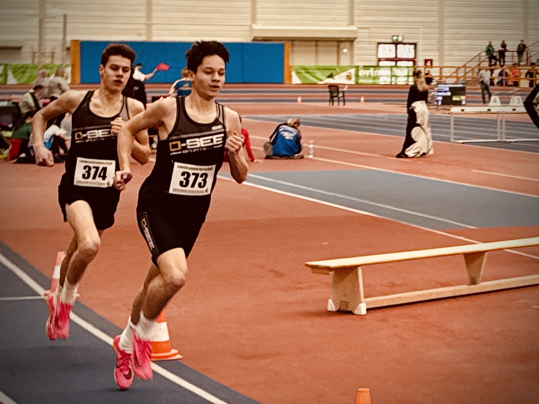 Noah sprintete in der M15 mit neuer Bestzeit von 7,54s ins 60m-Finale und errang sensationell die Bronzemedaille. Endlich mal kein 4. Platz! Das war ein Paukenschlag. Die gute Sprintverfassung verhalf ihm auch über die 300m zu einer respektablen 40,91s und einem 5. Platz.