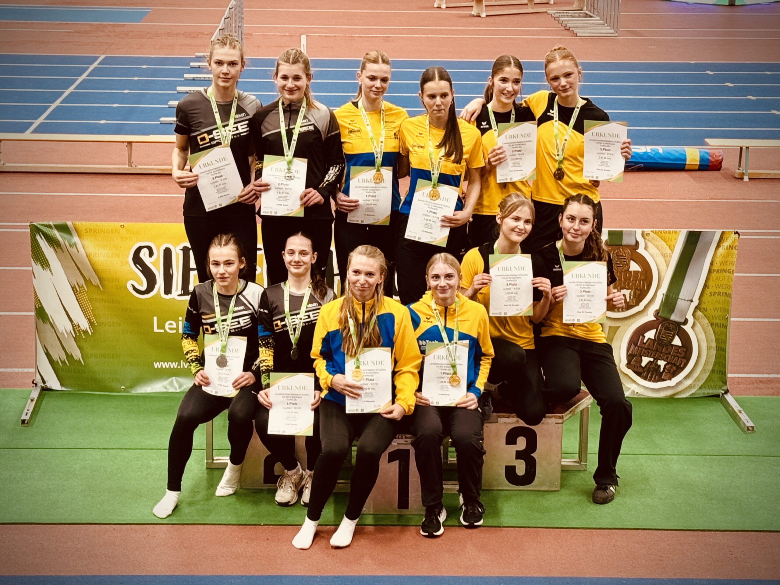 Auch unsere beiden Sophias waren in der nun neuen Altersklasse U18 als jüngerer Jahrgang dabei, da trafen sie nun ungebremst auf die starke ältere Konkurrenz. Während die eine Sophia einen guten Platz 14 im Weitsprung belegte, gewann die andere doch tatsächlich die Goldmedaille über 400m in 60,23s! Einen Tag später war noch so viel Energie da, dass Sophia in ihrer Paradedisziplin 800m aufs Treppchen lief: Silbermedaille und neue Bestzeit 2:17 min, zugleich Quali für die Deutschen Jugend-Hallenmeisterschaft. WOW!