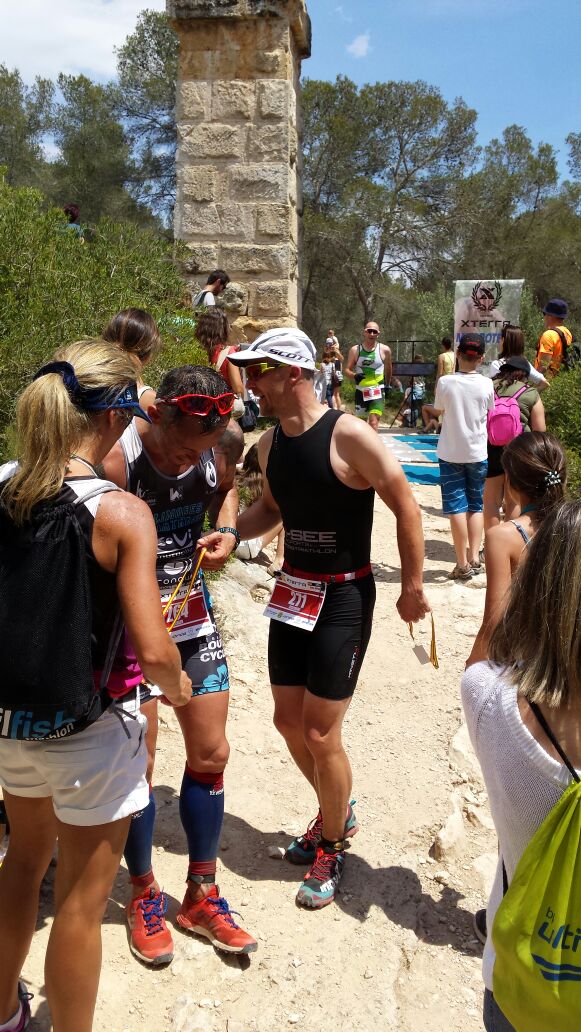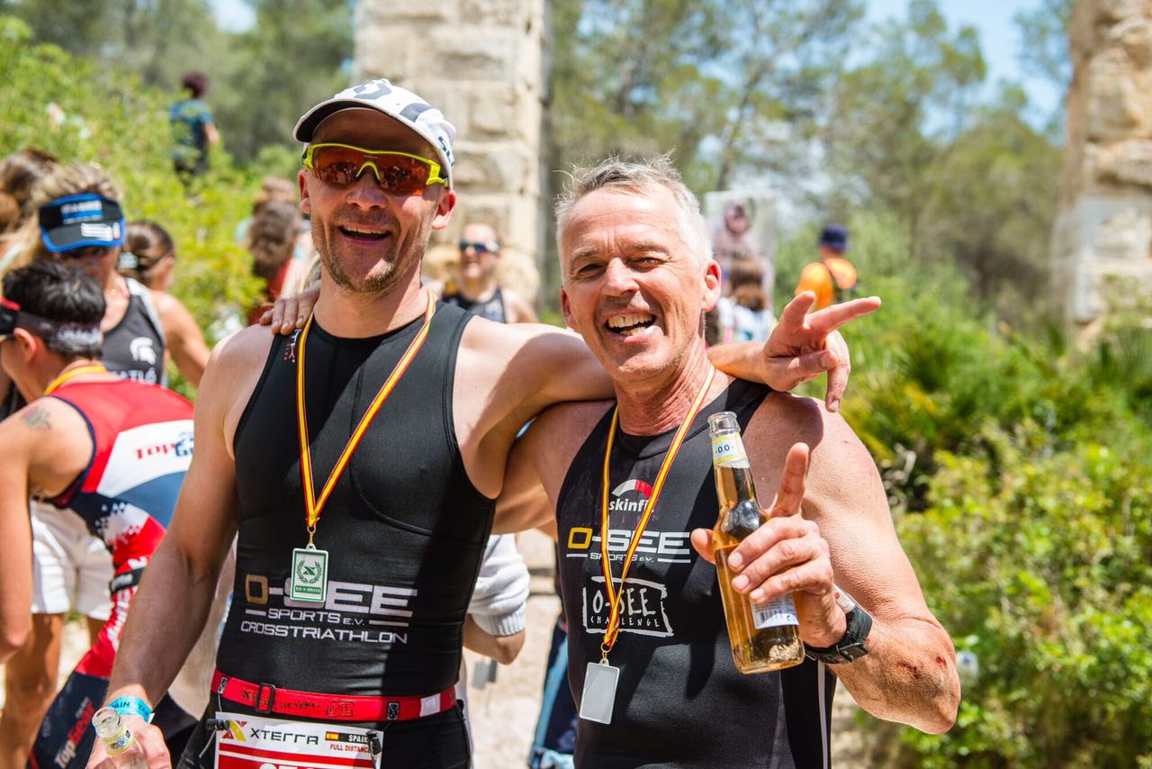 So fand symbolträchtig der Start am Strand unweit der Kampfarena „Amfiteatre Roma“ statt. Hier stellten sich unsere „Atleta de triatlo’n“ Rene Zischow, Eric Friemelt und Jörg Teifel der Herausforderung am Mittelmeer. Zum Glück wurden sie am Wettkampftag von hohem Wellengang verschont, wie er bis zum Vorabend vorherrschte. Das hätte die Schwimmstrecke mit ein paar Einlagen im Wellenreiten zu einer besonderen Herausforgerung gemacht. Vom Schwimmwechsel führte der MTB-Trail mitten in einem Flutgraben in die Berge zum Bikeareal, wo noch einmal 2 Runden a 13 km zu bewältigen waren. Die technisch anspruchsvolle Strecke, mit vielen Richtungswechseln und ständigen Bergauf- und -abpassagen, bot keinerlei Erholungsmöglichkeiten und verlangte von den Teilnehmern alles ab. Wer hier zum Laufen noch über die nötigen Körner verfügte, konnte sich glücklich schätzen. Das gelang unserem Eric Friemelt sehr eindrucksvoll, der bei seinem ersten Triathlon über die XTERRA Distanz als 23ster bei 246 Startern aus dem Wasser kam und mit dem Platz 72 in der Gesamtwertung und mit 26 Minuten auf den Sieger ins Ziel kam. „Fantástico“ Rene Zischow, der sich sein Rennen gut eingeteilte, landete auf Platz 30 der AK M40 unter 55 Startern. Ein paar Minuten später kam Jörg Teifel ins Ziel, aber zur großen Freude mit einem Platz auf dem Podium – Platz 3 in der AK M55!