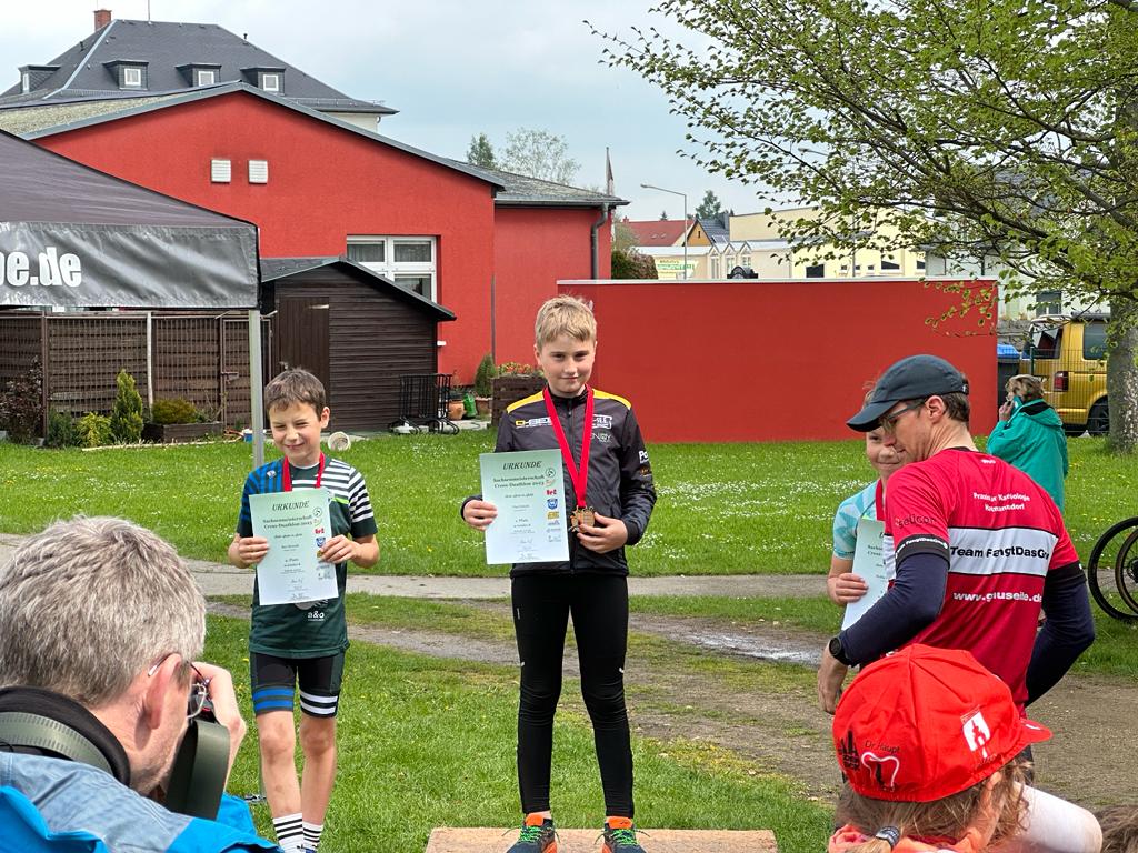 Mit seinem Sieg beim Crossduathlon in Hartmannsdorf sicherte sich Tim nicht nur den ersten Platz, sondern gleichzeitig auch den Sachsenmeistertitel im Crossduathlon. Nach dem für ihn enttäuschenden 6. Platz beim GISA Duathlon ein riesiger Motivationsschub.