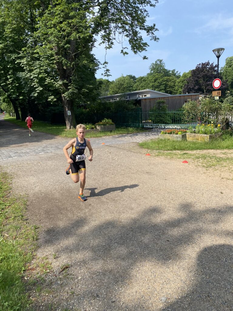 Um 10:30 Uhr startete Tim, der 400m Schwimmen absolvieren musste. Er kam gut voran und verließ als Erster seiner Altersklasse das Becken. Der Wechsel vom Schwimmen zum Laufen erfolgte schnell und sauber. Beim Laufrennen ließ Tim den anderen keine Chance und holte sich mit einer großartigen Leistung den ersten Platz.