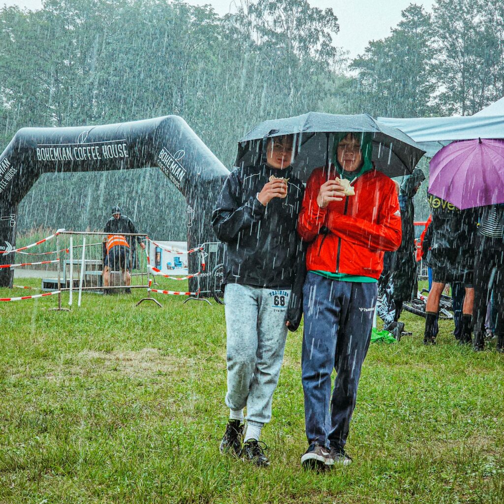 Um 11 Uhr war Start der Jugend/Erwachsenen. Dieser war leider fast bis zum Ende vom Regen begleitet, sodass es die Strecke, die vom Streckenprofil eher einfach gehalten ist, zu einer technisch sehr Anspruchsvollen verwandelt hat. Das zog leider ein paar Stürze nach sich – auch in unseren Reihen, welche dem Erfolg jedoch keinen Abbruch taten. Nils holte sich in seiner Wertungsgruppe den 1. Platz und Emil sicherte sich in seinem Wertungsgang einen starken 2. Platz. Um 13 Uhr folgten dann die Kinder. Dieser Wettkampf wirkte schon fast ein vereinsintern. Von 21 Teilnehmern waren 16 Starter vom O-SEE Sports. Der Regen ließ die Kinder und Jugendlichen fast bis zum Ende in Ruhe. Doch durch die Nässe vorher und durch den Wettkampf der Erwachsenen, die auch einen Großteil der Kinderstrecke befuhren, wurde auch die eher flach gehaltene Kinderstrecke, zu einer technischen Herausforderung. Aber unsere Kinder haben sich sehr gut geschlagen und konnten großartige Ergebnisse hervorbringen. So holte sich Lenny den 1. Platz und Leonie und Arthur den 2. Platz in ihrer Wertung. Leider wurden die Einzelwertungen der unteren Altersklassen zusammengefasst, sodass nicht alle ihre hervorragende Leistung auch auf dem Siegerpodest feiern konnten. Jedoch bekamen auch hier die Teilnehmer noch eine Ehrung in Form eines kleinen Geschenks.