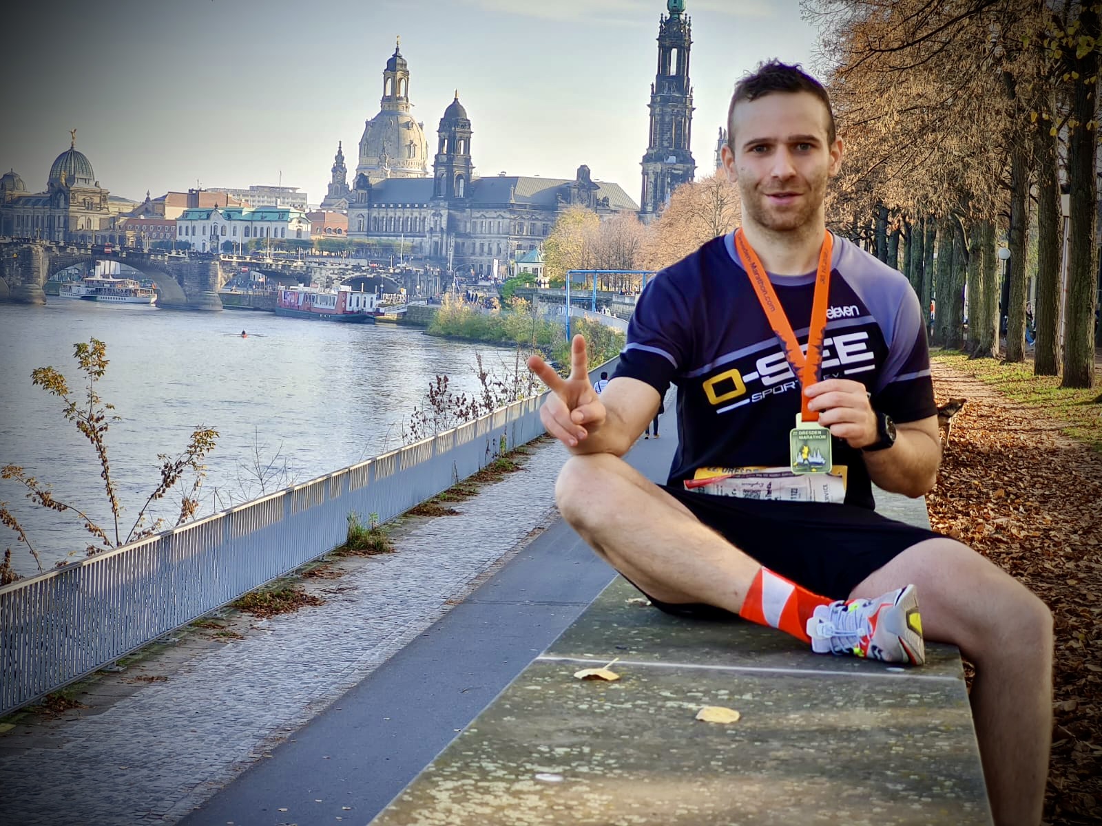 Vergangen Sonntag wurden zum letzten Mal in dieser Saison noch einmal die Straßen-Wettkampfschuhe geschnürt. 42,195 km beim Dresden-Marathon und es wurde heiß, im wahrsten Sinne des Wortes! Bei spät-sommerlichen 22 °C  starten mehr als 900 Läuferinnen und Läufer über die längste olympische Distanz (über 5.600 Starter:innen über alle Distanzen). So auch unser Sportkamerad Patrick Freiberg, welcher nach der langen Triathlon-Saison und einem erfolgreichen 2.Platz über die 16k beim O-SEE Ultra Trail ein letztes Highlight vor Augen hatte. Erster reiner Marathon-Wettkampf vor der Haustür, wenn das nicht motiviert. Und so ging er mit dem grob ausgeloteten Ziel unter 3 Stunden zu finishen an die Startlinie. Gesagt, getan. Patrick lieferte ab und spulte konstant die angepeilte Pace Kilometer für Kilometer ab. Den ersten Halbmarathon etwas schneller, sodass hinten raus etwas Puffer blieb. Die Taktik ging auf. Nach offiziellen 2:59:38 überquerte er die Ziellinie als Gesamt 40. und 10. in seiner Altersklasse. Starke Performance! Das gibt neue Motivation für die kommende Saison.
