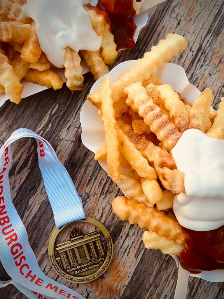 An Pfingsten ging es für einen kleinen Trupp unser Athletics Crew in die Hauptstadt zum „The Berlin Meeting“ des TuS Lichterfelde. Mit gleich 4 Sprüngen konnte Marek erstmals die magische 6 Meter Grenze überbieten. Mit klasse 6,22 m siegte er im Weitsprung ebenso wie im Dreisprung mit neuer Bestweite von 12,51 m in der U18. Außerdem testete Marek sein Sprintvermögen über 200 m und kam mit guten 25,23 s ins Ziel. Lucas, AK13, zeigte seine Topform mit einen grandiosen 800 m-Lauf und konnte sich knapp geschlagen über eine neue Bestleistung von 2:20 min (vormals 2:37 min) und Platz 2 freuen. Mit 48,50m (Platz 3) im Ballwurf und 4,73 m im Weitsprung (Platz 4) kann Lukas durchaus optimistisch auf den bevorstehenden Höhepunkt, die Landesmeisterschaft, blicken. Neue Bestzeiten auf 800 Meter gab es für Franz und Oskar, beide U16. Für Franz bleib die Uhr bei 2:23 min stehen, bei Oskar, der ein Jahr älter als Franz ist, stoppte die Uhr bei 2:17 min. Dies bedeutete Platz 7 und 4 in der Konkurrenz. Beide liefen am Vorabend außerdem über die 300 m (Oskar: in 42,98 s und Franz 45,81 s). Paula, die auf den Mittel- und Langdistanzen heimisch ist, ging über 400 m und 800 m an den zwei Wettkampftagen an den Start. 64,78 s über 400 m bedeutet für Paula neue persönliche Bestleistung. Tags darauf lief sie ihr zweitschnellstes 800m-Rennen in 2:19,52 min (PB 2:18,81 min), was ihr gleichzeitig die Bronze-Medaille und zugleich die fünfte Medaille unserer Wettkampfreise nach Berlin bescherte. Bereits die Woche zuvor verteidigte Paula ihren Landesmeistertitel über die 3000m in Berlin-Brandenburg in 10:26min (Normalerweise ist es nicht möglich, an Landesmeisterschaften eines anderen Landesverbands teilzunehmen, jedoch macht dies eine Ausnahmeregelung in der U20 möglich). Um Berlin nicht nur vom Stadion aus sehen zu können, statteten wir am Abend noch einem Berliner Lichtshowmuseum einen Besuch ab, bevor es nach einer kleinen Stadtrundfahrt mit Stopp am Brandenburger Tor und dem Fernsehturm wieder zurück in die Heimat ging.