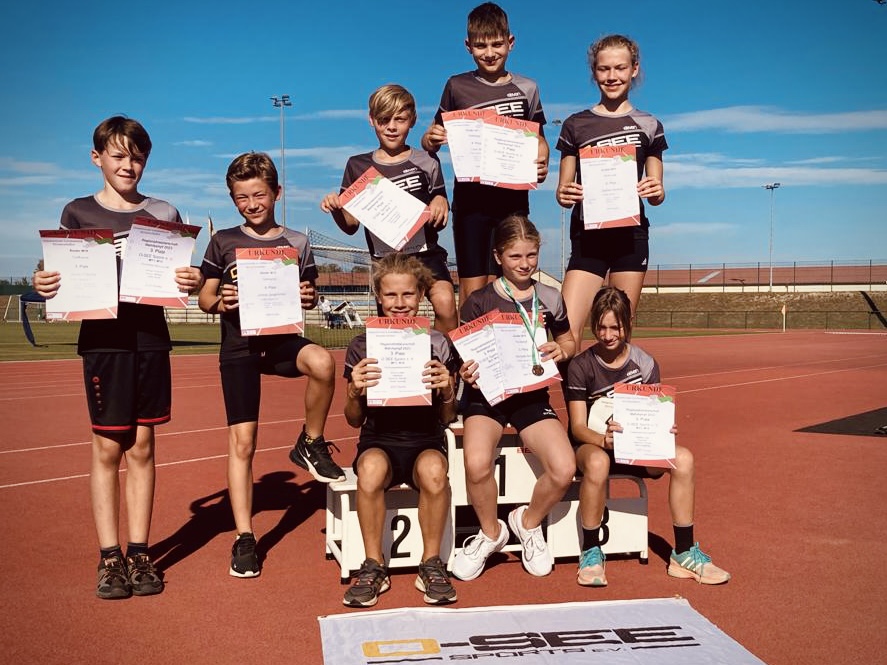 Am 24.9. war für unsere Minis und Starter der U8 und U10 wieder Kinderleichtathletik in Dresden-Weißig angesagt. Beide Teams legten sich ordentlich ins Zeug und zeigten was sie sich im Training gemeinsam erarbeitet haben. Unser U8-Team gewinnt zur Freude aller Bronze! Unser U10-Team, das drei junge U10er Kids an das U8-Team abgeben musste, damit dieses die Mindestgrösse von 6 Kids erreichen und starten durfte, kämpfte mit vollem Einsatz, das haben alle gesehen. Leider war hier ein Medaillenrang außer Reichweite. Zum Glück aber ist geteiltes Leid, halbes Leid.