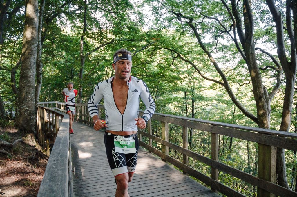 Am frühen Morgen richteten sich alle Athleten ihre zweite Wechselzone, gelegen am Ski- & Spa Resort Norefjell, ein. Anschließend ging es bei kalten 5 °C Außentemperatur von 750 m Höhe mit dem Rad runter auf Meereshöhe zum Krøderen See. Hier befand sich die erste Wechselzone und war zugleich Start des Rennens. Welch Glück für unseren Starter ist der See aufgrund der nächtlichen Temperatur auf 13 °C abgekühlt. Die Schwimmstrecke wurde daraufhin von 1500 m auf 750 m gekürzt. Das kommt einer Bleiente doch sehr entgegen! Nach erfrischenden 18 Minuten ging es dann auf die 30 km Radstrecke. Auf den ersten 20 km dreht man eine Schleife mit Anstiegen und Abfahrten und ein paar Singletrails „gemütlich“ durch den Wald. Der Hammer auf dem Radkurs sollte dann erst ab Kilometer 20 fallen. Ab hier ging es nur noch steil nach oben. 500 Höhenmeter auf 10 km. Keine Zeit und Möglichkeit sich die Beine vor dem Wechsel aufs Laufen nochmals auszuschütteln. Mit erhöhtem Puls ging es in die Wechselzone 2. Kurzer Snack an der Verpflegungsstation. Anschließend folgte ein knackiger Lauf über 11 km. Die ersten drei mit stetigem Anstieg auf befestigtem Schotterweg. Ab jetzt folgte der härteste Teil. 1,5 km mit 200 Höhenmeter, zum Teil matschig und mit Felsen verblockt. Für Patrick und die meisten anderen Athleten ging es nur noch gehend bis zum höchsten Punkt der Strecke. Nach technisch sehr anspruchsvollem Abstieg über 7 km, lief Patrick nach 3h 14min sehr glücklich zu seinem ersten XTERRA-Finish ein. Als 17. Platz aller Männern und 1. Platz in seiner Altersklasse kann sich das Resultat durchaus sehen lassen.