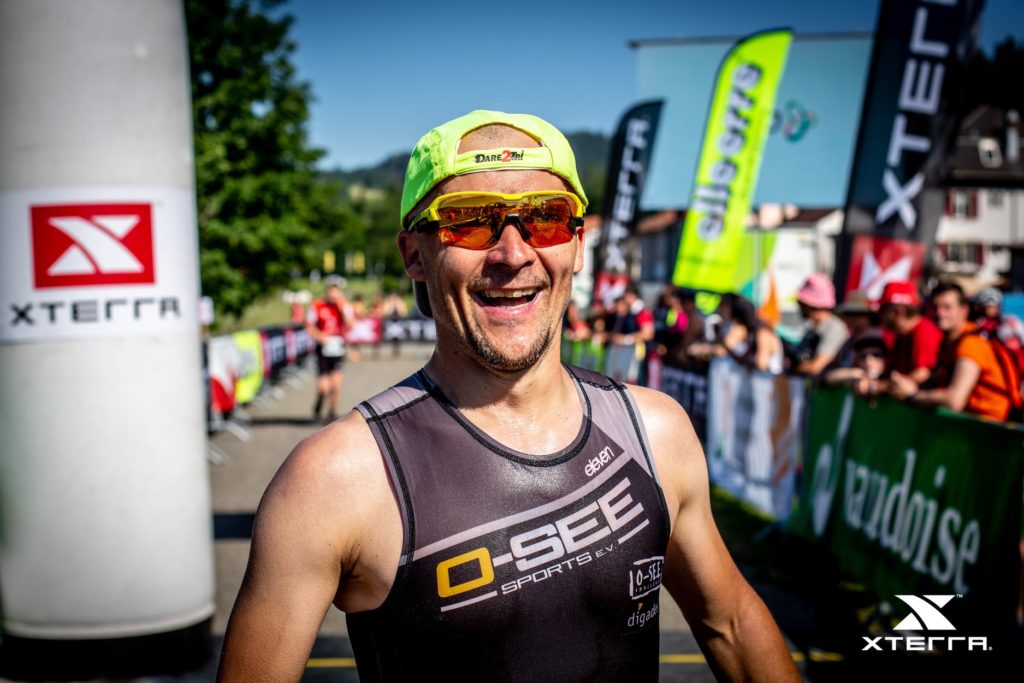 Start 14 Uhr … gar nichts für uns. Die Anspannung war recht hoch und kaum jemand wollte angesprochen werden ;). Während Janet sich schon am Morgen beim Sprint die Kante gab, machten sich Maria, Sandra, Torsten, Ronny, René und Dani erst nach dem zweiten Frühstück auf in den Wechselgarten. Die wie erwarteten sommerlichen Temperaturen waren da, pralle Sonne 31 Grad – auch wieder nicht richtig. Aber erst ging es ja im Wasser auf leicht längerer Strecke, mit ca. 1,6 Km und ohne Landgang, heiß her. Bis auf Torsten, der nach 200m ausstieg, weil er im Gedränge wohl was abbekommen hat, und Ronny, der auf dem Schwimmkurs nicht in seinen Flow kam, waren alle mit der Schwimmperformance zufrieden. Dann rauf aufs Rad … Viele Zuschauer, hohe Motivation. An den Steilklippen ging es direkt durch die zahlreichen Badegäste am Lac, welche uns mächtig anfeuerten. Die Radstrecke war super ausgeschildert und viele Posten schauten nach einem fairen Wettkampf. Maria hatte hier etwas Pech und mit einem Plattfuß zu kämpfen aber Vereinskollege René konnte ihr mit Pumpe helfen und sie konnte das Rennen wieder aufnehmen. Auf dem anschließenden Run-Split kam die Hitze so richtig dick … Kaum ein Lüftchen wehte um den See und das machte den Lauf hinten raus so richtig hart. Aber alle verbleibenden XTERRA Warriors finishten solide und freuten sich auf ein Zielbier mit Schweizer Flammkuchen.