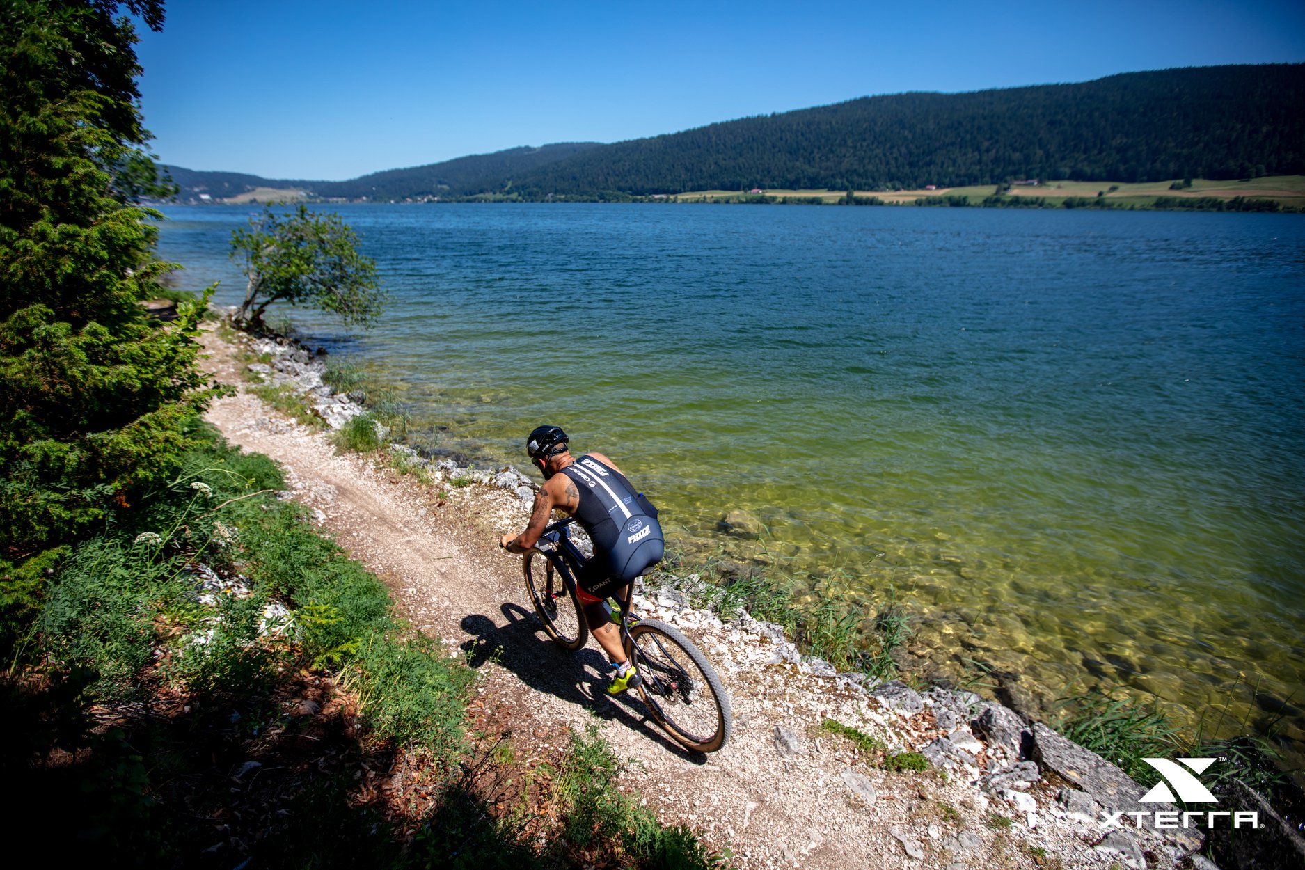 Die XTERRA Europe Tour lud vergangenes Wochenende ins Schweizer Hochtal Vallée de Joux ein. Ein ausgesprochen schöner Fleck Erde auf ca. 1000m gelegen, mit den Bergseen Lac de Joux und Lac Brenet, welche direkt verbunden sind und durch die aktuell anhaltende Hitze schon eine Wohlfühltemperatur von 25-27 Grad hatten. Eigentlich war uns gleich klar, dass hier leider kein Neo zum Einsatz kommen wird, aber die Hoffnung stirbt bekanntlich zuletzt ;). Angekommen, wurde direkt der See gecheckt, und nach der langen Autofahrt am Strand relaxt. Die kommenden Tage inspizierten wir die Bike-Strecke an den Steilklippen am Lac de Joux, die fast ausschließlich auf relativ einfachen Trails mit steilen Anstiegen verlief. Die 13Km Runde mit ca. 270 Höhenmetern galt es zweimal zu absolvieren und erwies sich als sehr schnelle Strecke. Der Run-Split ging mit 5,6Km Länge pro Runde und 100 Höhenmetern um den Lac Brenet. Inmitten der Runde gab es einen sehr saftigen Anstieg in schroffem trailigen Gelände, und sie führte dann weiter über typische Schweizer Bergwiesen zwischen Bauernhöfen und Kuhherden an den See. Das Ganze gab es im Rennen auch zwei Mal für die Füße.