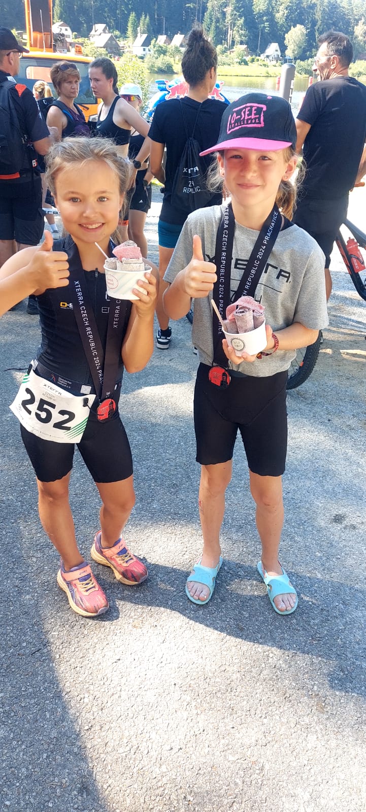 In der AK 12-13 ging Stepan an den Start. In der AK 14-15 sind Sophie, Leonie, Arthur und Lenny auf die Runde gegangen. Auch die Fünf zeigten vollen Ehrgeiz und den Willen zu kämpfen. Stepan holte sich den 14. Platz, Arthur erkämpfte sich den 12. Platz und Lenny kam auf den 13. Platz. Sophie holte sich einen fantastischen 4. Platz und qualifizierte sich somit auch für einen Startplatz bei der XTERRA WM in Molveno, herzlichen Glückwunsch.